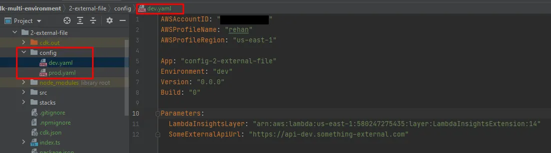 With this method we split our application configuration from the CDK context file and store it in multiple YAML files. Where the name of the file indicates the environment.