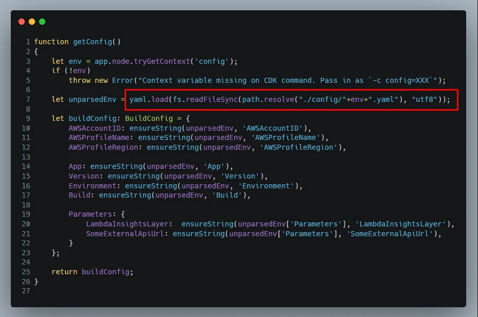 With this method we split our application configuration from the CDK context file and store it in multiple YAML files. Where the name of the file indicates the environment.