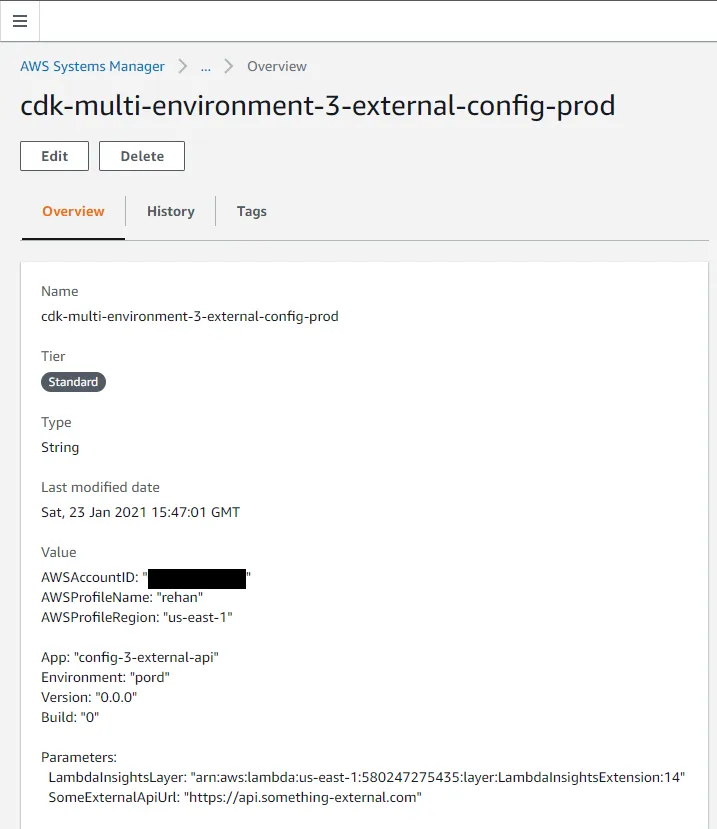 This is so that we can set them to be used by the AWS SDK which in return makes authenticated API calls to AWS for us. We created the SSM Parameter Store record (below) with the exact same content as the YAML files. So that after retrieving it, we parse and populate the BuildConifg exactly the same as we did for the YAML files method.