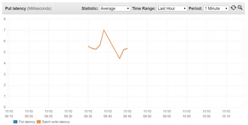 What is amazing is that the Batch Write API Latency stayed below 10ms for all of the writes, there were some throttles though but the program handled and retried them correctly.
